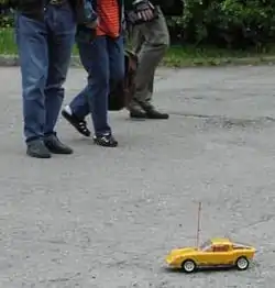 A radio-controlled car is a powered model car driven from a distance. Gasoline, nitro-methanol and electric cars exist, designed to be run both on and off-road. "Gas" cars traditionally use petrol (gasoline), though many hobbyists run 'nitro' cars, using a mixture of methanol and nitromethane, to get their power.