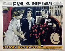 Lobby card with Jeanette Daudet, Pola Negri, and Griffith in Lily of the Dust (1924)