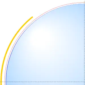 where .[6] Then discrepancies between empirical and theoretical values of the radius of curvature can be formed as . Finally, corrections for the initial equatorial radius and the flattening can be solved by means of a system of linear equations formulated via linearization of :[7]
