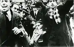 The protest included students, workers, employees and housewives – who demanded a reduction in the price of transportation to $1, using the slogan “Micros for one peso”.[2] Barricades were set up, stones were thrown, cars and buses were burned and overturned, and power lines were knocked down. By order of the Government of González Videla, Carabineros and members of the Army attacked the demonstrators disproportionately, leaving more than one hundred injured and an indeterminate number of deaths, ranging between 4 and 30 people.[2][4]