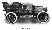 The "Rex King of British Motor Cars" was exhibited on Stand 20 at the 1901 Crystal Palace motor show.[7] This was a 6.5HP 4-seater, but over the next year there were successive power increases and by the Spring 1903 exhibition at the Agricultural Halls the car was available with up to 16HP.[8] Their display also showed the 10HP engine, a water-cooled single of their own making with automatic inlet valve.