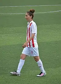 She made her first appearance in the national team taking part at the UEFA Women's Euro 2009 qualifying match against Northern Ireland on November 18, 2006.[7]