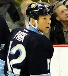 Following his second OHL season, he was drafted 50th overall by the Pittsburgh Penguins during the 1994 NHL Entry Draft.[4] He made his NHL debut when he played one regular season game and three Stanley Cup playoff games for Pittsburgh during the 1994–95 season. He became only the second Korean-born person to play in the NHL after Jim Paek. Coincidentally, both of them were drafted by the Penguins. Park played most of the 1995–96 NHL season, appearing in 56 games. He spent the next few years moving between the Anaheim Ducks, Philadelphia Flyers and various International Hockey League (IHL) and American Hockey League (AHL) teams. He played again in the NHL during the 2001–02 season after signing with the Minnesota Wild.