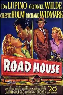 Road House is a 1948 American film noir drama film directed by Jean Negulesco, with cinematography by Joseph LaShelle. The picture features Ida Lupino, Cornel Wilde, Celeste Holm and Richard Widmark.[2]