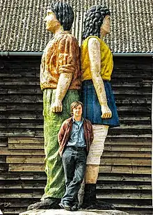 Most of us, to some extent, remember the stories we were told as children – fragments of fictional tales designed to engender good behaviour, or simply fuel our imaginations. For Robert Koenig, growing up in the suburbs of Manchester, the stories were all too real – rich tales of his mother's childhood in south-east Poland, full of community and characters, superseded as he grew older by the altogether darker narrative of her wartime removal to Germany, the hell of the labour camps and her eventual arrival in the UK. For Koenig, the stories stuck, creating a desire to learn more, to see the country of his ancestors and to come to terms with his family history. As a young man in the 1970s, he endured lengthy coach rides and the privations of communist Poland to rebuild the bond with his greater family. As his knowledge of that country grew, so did his realisation that he was shaped more deeply by his past: a sculpting contemporary of Anthony Gormley at London's prestigious Slade School of Art, Koenig suffered for his instinctive – and unfashionable – decision to work in wood, a form which he was now to appreciate as a distinctly Polish tradition. As he matured, Koenig sought his defining project and so in 1997 began carving a series of greater-than-life-size figures, initially called "Dziady", the Polish name of a ceremony celebrating the memory of deceased ancestors, but since renamed "Odyssey" for what has become an international audience. A mass of figures to represent the ancestors he never met, they are "monumental", although rather than crying out for attention, they appeal to the viewer on a more intimate, empathetic level, often inspiring strong emotions from those who come into contact with them. A film of Robert Koenig's tour to the Ukraine – Dziady: In Search of Jan Dudek – will be released soon.[10] (Jan Dudek is Robert Koenig's sculptor uncle who died in 1929 in Przemyslany, Poland – now a part of Western Ukraine).
