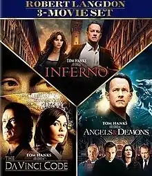 The Robert Langdon franchise consists of American action-adventure mystery-thriller installments, including three theatrical films directed by Ron Howard, and a television series.[2][3] The films, based on the novel series written by Dan Brown, center on the fictional character of Robert Langdon. Though based on the book series, the films have a different chronological order, consisting of: The Da Vinci Code (2006), Angels & Demons (2009) and Inferno (2016), all starring Tom Hanks as Langdon, alongside different ensemble casts. Despite mixed-to-negative critical reception, the films are considered box office successes, having a combined gross total of $1.5 billion worldwide.