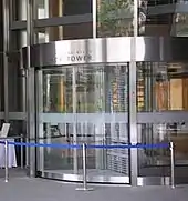 While on a tour of Mori Tower on the morning of 26 March 2004, six-year-old Ryo Mizokawa was killed in a revolving door at the building's second-floor main entrance. Mizokawa's head was crushed between the door rotating from his left and the outer frame; he died two hours after reaching the hospital.[12] The door's motion safety sensor was originally set to detect anything standing 80 centimeters (31 in) tall. This setting was changed to 135 centimeters (53 in), however, after the door began stopping unnecessarily when detecting a newly installed, nearby safety barrier. After the incident, it was revealed that 32 people had previously sustained injuries caused by revolving doors at Roppongi Hills since the complex opened less than a year earlier.[13] In September of the same year, in an out-of-court settlement, the Mizokawa family received a compensation payment of approximately 70 million yen from the building's operator, Mori Building Company.[14][15] This sum was approximately equivalent to the cost of two doors of the type that caused the fatality.[16]