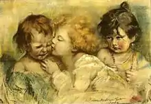 Gutti was born in Rome, then part of the Papal States. Her work The Peacemaker was included in the book Women Painters of the World.[1] This became a popular print and was the primary illustration on an Australian poster for WWI war bonds.[2] The image was also used on a Canadian WWI poster "For Your Children Buy War Savings Certificates and they will live to thank you". A sketch of this group titled "Three infants" is in the collection of the British National Trust.[3]