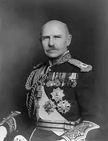 His first appointment after the war was when he became lieutenant of the Tower of London on 22 March 1920.[45] Appointed aide-de-camp general to the King on 1 October 1920,[46] he became General Officer Commanding at Aldershot Command on 2 November 1920[47][48] before being promoted to general on 2 November 1921.[49]