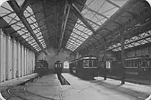 Russell Street used to be a traditional Chinese wet market where hawkers sold vegetables, fruits, meats and groceries. Dai pai dong (cooked-food stores) could also be found along the street. Due to the lack of hygiene and sanitation knowledge at that time, mice infestation was very serious in there—people even called Russell Street the "Mouse Street".[6] The Jian family, in 1905, founded The Nanyang Brothers' Tobacco Co., based in Russell Street. Due to the intense rivalry with the monopoly, British American Tobacco company, the Jian family declared bankruptcy and closed the factory in 1908. In the 1920s, Hong Kong Tramways built a tram depot by Russell Street, mainly for tram repair and parking. As the demand for tram service grew, the old Russell Street tram depot could no longer park all the trams Hong Kong Tramways owned. The company decided to expand the Russell Street depot, and at the same time built a temporary tram depot in North Point to ease tram parking problem. In 1951, Hong Kong Tramways finished the renovation of Russell Street depot, renamed it as Sharp Street depot. The North Point temporary tram depot was then closed.[7] Not long after the expansion of the Russell Street tram depot, the Tramway workers resented Hong Kong Tramways for unjustifiable dismissal and break of employment contract, which eventually caused a labour dispute in 1952. In 1989, Lockhart Road market reconstruction completed. Hawkers and Dai Pai Dong on Russell Street all moved into the new Lockhart Road market. The Sharp Street depot (formerly Russell Street depot) was shut down and demolished. All trams were moved to Sai Wan Ho and Whitty Street depot. The site of Russell Street was then reconstructed into Times Square.