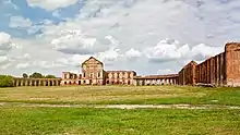 Ruzhany Palace (Belarusian: палац у Ружанах, Polish: Pałac w Różanie)[1] is a ruined palace compound in Ruzhany village, Pruzhany District, Brest Region, Western Belarus. Between the 16th and 19th centuries Ruzhany, then called Różany, was the main seat of the senior line of the Sapieha noble family, known as the Sapiehas of Ruzhany. The castle is currently undergoing systematic reconstruction, with the palace ornate gate and entry building being already restored.