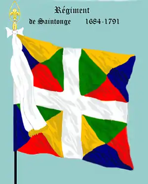 The Saintonge Regiment, also known as the 85e Regiment of the Line, was raised in the year 1684 in the province of Saintonge, France. From 1763 to 1768 the regiment served in the West indies and French Guiana. In 1780 the regiment was sent with Jean-Baptiste Donatien de Vimeur, comte de Rochambeau to help the United States during the American Revolutionary War. The regiment took part in the Siege of Yorktown in 1781. In 1782 the regiment returned to the West Indies and then back to France in 1783. Following the French Revolution the regiment became the 82e Regiment of Infantry.[1]