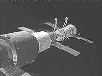 ![]() Salyut 1 as seen from the departing Soyuz 11 | |