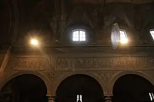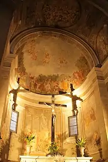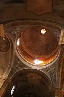 The marble pulpit is instead from 1508, by Benti and Lorenzo Stagi, while the walls and the ceiling were painted by Luigi Ademollo in 1823-1825. The dome was originally octagonal (1453), but was rebuilt on circular plan in 1820.