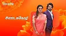 Sandakozhi (transl. Fighting Rooster) is an 2023 Indian Tamil-language television series, aired from 8 May 2023 on Zee Tamil and streaming on ZEE5.[1] The series stars Riya Vishwanathan and Niyaz Khan in the lead roles.[2][3] The theme of this series were taken from ZEE's popular television series Poove Poochudava that aired from 2017–2021.