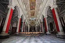 Built in baroque-style, the interior has three naves.[2] In the left nave, the reliquary float of St. Alphius, made of silver, is stored. The float is carried in a procession through the main streets of Lentini during the celebrations for Saints Alphius (9–11 May), the patron saint of the town.[3] The right nave hosts the sepulchres of the martyrs Alphius, Philadelphus and Cyrinus.[2][4]