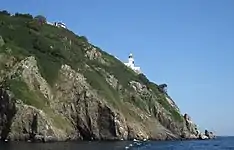 Sark Lighthouse is an active lighthouse located on the side of cliffs at Point Robert, at the north east of Sark, and guides vessels passing through the Channel Islands away from Blanchard Rock, which lies several miles to the east.[1] It was constructed by Trinity House in 1913 and comprises a white, octagonal tower rising from flat-roofed service rooms and cottages, all built of stone. Access is provided by steps down from the top of the cliff, but the lighthouse was automated in 1994 and is now remotely monitored from the Trinity House operations centre in Harwich, Essex.[2]