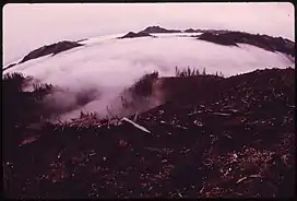 ![]() Logged hill, foreground, and peaks rising above fog in Satsop Hills | |