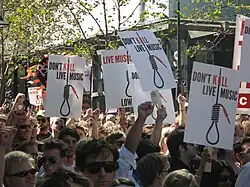 - ↑ Simon Leo Brown (23 February 2010). "Thousands rally in support of live music". ABC Radio Melbourne. Retrieved 9 May 2014.