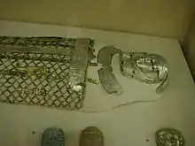 Faience pectoral scarab with spread wings and bead net, Royal Pump Room, Harrogate