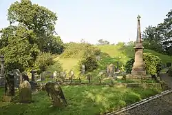 Burnley | 140 metres (460 ft) and 155 metres (509 ft) east of Beadle Hill are two bowl barrows thought to date from the late Neolithic or Bronze Age periods. The turf-covered, circular mounds of earth and small stones are surrounded by an approximately 1-metre (3 ft 3 in) wide shallow ditch, which is unusual in Lancashire. The westerly is the larger, at 9.5 metres (31 ft) diameter and 0.1-metre (3.9 in) high. The easterly is 8.5 metres (28 ft) wide and a similar height.[19][20] |