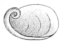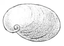 T. imperforata, depressissima, ambitu ovalis, solidula, striis incrementi distinctis et lineis impressis radiantibus sculpta, fulva; spira minima, ⅛ longitudinis occupans; anfr. 2½, ultimus latere subcompressus; columella superne crasse callosa; apertura oblonga, intus submargaritacea. — Long. 10, diam. 7, alt. 2½ mm. Obwohl über den Bewohner dieser in den Urwäldern der mittleren Waikatogegend gesammelten Gehäuse mir keine Notiz vorliegt, so ist es doch nach dem ganzen Habitus und allen Charakteren nicht zu bezweifeln, dass die Schnecke der Gattung Daudebardia angehört, deren grösste bis jetzt bekannte Art sie ist.