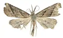 The wingspan is 16–17 mm. The ground color of the forewings is grey brown and the hindwings are ochreous grey.[1]