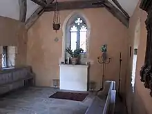 There is a small stone chapel in the grounds, believed to date to about 1450 and built by the Hungerford family for use by themselves and their servants. It has an east window with Perpendicular tracery.[8] After a long period of use as stables, it was restored in the twentieth century.[9] There is also a brick-built storehouse mounted on staddle stones to prevent incursion by rats.[3]