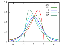 Probability density function ![]() values of as shown in legend | |||