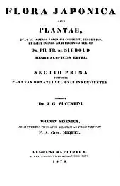 Siebold wrote his Flora Japonica in collaboration with the German botanist Joseph Gerhard Zuccarini (1797–1848). It first appeared in 1835, but the work was not completed until after his death, finished in 1870 by F.A.W. Miquel (1811–1871), director of the Rijksherbarium in Leiden. This work expanded Siebold's scientific fame from Japan to Europe.