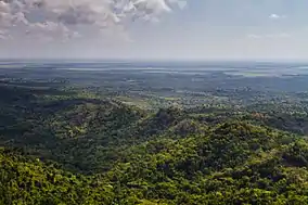 Over 800 species of plants are hosted in the mesic forest that covers the mountains, with 35% being endemic.[2] Fauna includes five species of bats; numerous birds (notably the Bee hummingbird); various frogs, including the yellow-striped pygmy eleuth (Eleutherodactylus limbatus) and the Zeus' robber frog (Eleutherodactylus zeus); and various lizards such as the Anolis luteogulartis.[3]