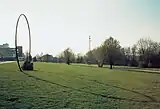 The term "site-specific art" was promoted and refined by Californian artist Robert Irwin[7][8] but it was actually first used in the mid-1970s by young sculptors, such as Patricia Johanson, Dennis Oppenheim, and Athena Tacha, who had started executing public commissions for large urban sites.[9] For Two Jumps for Dead Dog Creek (1970), Oppenheim attempted a series of standing jumps at a selected site in Idaho, where "the width of the creek became a specific goal to which I geared a bodily activity," with his two successful jumps being "dictated by a land form."[10] Site specific environmental art was first described as a movement by architectural critic Catherine Howett and art critic Lucy Lippard.[11] Emerging out of minimalism,[12] site-specific art opposed the Modernist program of subtracting from the artwork all cues that interfere with the fact that it is "art",[13]