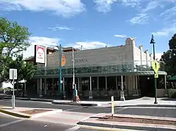 The Skinner Building is a historic building in Albuquerque, New Mexico, considered to be one of the best examples of Art Deco architecture in the city.[1][4] Originally a grocery store owned by J.A. Skinner, it was designed by local architect A.W. Boehning and built in 1931. The building is of brick construction, with a street facade of white terra cotta tile on the north and west sides. Its exterior features a variety of decorative details including fluted towers, grill work, stained glass, and geometric patterns.[1] The Skinner Building was added to the New Mexico State Register of Cultural Properties[5] and the National Register of Historic Places in 1980.[2]