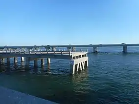 Skyway Fishing Pier State Park is a Florida State Park located on the north and south sides of the mouth of Tampa Bay. When the original cantilevered Sunshine Skyway Bridge, carrying I-275 (US 19), partially collapsed in 1980, due to the collision of a freighter on one of its pilings, it was replaced by the current bridges. The approaches to the old bridge, however, were left in place and converted into the longest fishing pier in the world.