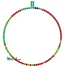 In molecular biology, snoRNA snR57 is a non-coding RNA (ncRNA) molecule which functions in the modification of other small nuclear RNAs (snRNAs). This type of modifying RNA is usually located in the nucleolus of the eukaryotic cell which is a major site of snRNA biogenesis. It is known as a small nucleolar RNA (snoRNA) and also often referred to as a guide RNA. snoRNA snR57 belongs to the C/D box class of snoRNAs which contain the conserved sequence motifs known as the C box (UGAUGA) and the D box (CUGA). Most of the members of the box C/D family function in directing site-specific 2'-O-methylation of substrate RNAs.[1] snoRNA snR57 was initially discovered using a computational screen of the Saccharomyces cerevisiae genome.[2]