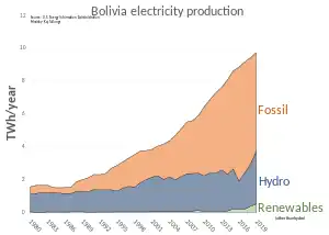 - ↑ "Bolivia quiere exportar 8.000 megavatios de electricidad". Opinión. Cochabamba. 2015-06-21. Retrieved 2015-11-04.