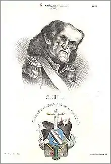 Marshal General Jean-de-Dieu Soult,[1][2] 1st Duke of Dalmatia (French: [ʒɑ̃dədjø sult]; 29 March 1769 – 26 November 1851) was a French general and statesman. He was a Marshal of the Empire during the Napoleonic Wars, and served three times as President of the Council of Ministers (prime minister) of France.