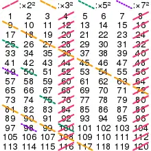 Square-free integers up to 120 remain after eliminating multiples of squares of primes up to √120