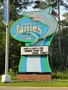 St. James High School (SJHS) is a public high school in Murrells Inlet, South Carolina, United States, located west of Highway 17 on Highway 707 approximately six miles from the Atlantic Ocean. It is one of 13 high schools in the Horry County School District. St. James has over 1,700 students and is the home of the St. James High School Sharks. St. James Elementary, Burgess Elementary, Seaside Elementary, St. James Intermediate, and St. James Middle School feed into St. James High.