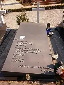 Stanisław Wojciech Mikke (11 September 1947 in Łódź – 10 April 2010) was a Polish lawyer. He was Deputy Head of the Council for the Protection of Struggle and Martyrdom Sites.