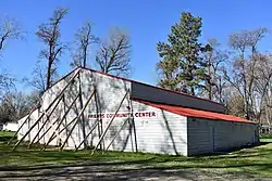 The Star Friends Church was constructed in 1912 near the northeast corner of the grounds, and from 1935 to 1985 a 10-day annual camp meeting occurred on the site. In 1941 Fred Harris sold his 5-acre parcel of adjacent land to the Idaho State Holiness Association, sponsors of the camp meeting. Harris was president of the association in the 1940s and 1950s, and he was credited with development of the camp and tabernacle. Eleven buildings were constructed on the site, including a 5200 square foot tabernacle. All but the tabernacle were demolished prior to 2004. The post and beam tabernacle is similar to a monitor style barn, and after 1985 it was repurposed as a community center.[2][3][4][5]