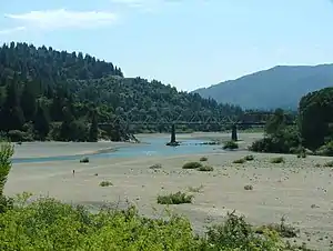 The Klamath and Dos Rios diversions were heavily opposed by local towns and Native American tribes, whose land would have been flooded under the reservoirs. Fishermen expressed concerns over the impact of the dams on the salmon runs of North Coast rivers, especially the Klamath – the largest Pacific coast salmon river south of the Columbia River. The project would have eliminated 98 percent of the salmon spawning grounds on the Klamath.[53] California Governor Ronald Reagan refused to approve the Dos Rios project, citing economic insensibility and fraudulent claims made by project proponents. The flood control benefits, for example, were largely exaggerated; the Dos Rios dam would have reduced the record 72-foot (22 m) Eel River flood crest of 1964 by only 8 inches (20 cm) had it been in place.[54]