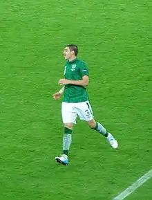 Ward received his first full call-up to the Republic of Ireland national team on 4 May 2011, for friendlies against Northern Ireland and Scotland as well as a UEFA Euro 2012 qualifier against Macedonia.[51][52] He made his national team debut on 24 May 2011 in a Nations Cup game against Northern Ireland, where he opened the scoring in a 5–0 victory.[53] Ward made his competitive debut for the Republic of Ireland against Slovakia in a UEFA Euro 2012 qualifying match, during which he kept a clean sheet in a 0–0 draw. Ward scored his second international goal in the second leg of the play-off for UEFA Euro 2012 against Estonia, sealing Ireland's place in their first major tournament since 2002 with an unprecedented 5–1 aggregate win.[54]