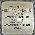 HERE LIVED GIUSEPPE MALAGODI BORN 1894 ARRESTED 10.12.1943 DEPORTED MAUTHAUSEN MURDERED 29.3.1945 GUSEN |