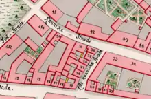 Krigsråd Mørks Minde, located around the corner at Lille Kannikestræde 4, was built in 1831 by Aagaard and was in 1865 converted into charitable housing foundation by 1865 af Emilie Mørk in memory of her husband.[11] The low complex on the other side of the street at Lille Kannikestræde 1–3 is also listed. It consists of a two-storey building from 1862 and a one-storey building from 1865 facing the street and a building from 1814 in the courtyard on the rear.[12]
