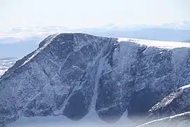Storstyggesvånåtinden is a mountain in Lesja Municipality in Innlandet county, Norway. The 2,212-metre (7,257 ft) tall mountain lies within Dovrefjell-Sunndalsfjella National Park, about 20 kilometres (12 mi) north of the village of Dombås in the Svånåtindene mountains. The mountain is surrounded by several other mountains including Nordre Svånåtinden which is about 3 kilometres (1.9 mi) to the north, Snøhetta which is about 5 kilometres (3.1 mi) to the northeast, Skredahøin which is 3 kilometres (1.9 mi) to the south, and Mjogsjøhøi and Mjogsjøoksli which are about 7 kilometres (4.3 mi) to the southwest.