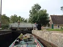 Prior to the takeover, the Lee Conservators had applied for a loan under the Development and Road Improvement Funds Act of 1909, and were granted five annual payments of £2,500, to be repaid when profits were made. Work began on rebuilding the locks in 1913, but the onset of the First World War in 1914 resulted in all work stopping, except for urgent repairs. It resumed when the war ended, and the navigation was reopened on 4 July 1924, the ceremony being performed by Harry Gosling, the Minister of Transport. Some traffic returned to the navigation, as trade in timber, grain and malt grew, but it died away after the Second World War, and the last commercial traffic was in 1972.[12] However, the growth in leisure boating was already well under way, and the navigation has seen a new lease of life as a result.[13]