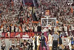 A student section or student cheering section is a group of student fans that supports its school's athletic teams at sporting events; they are known for being one of the most visible and vocal sections of a sports crowd as well as for their occasionally raucous behavior.[1] They are most often associated with NCAA basketball and football games, but can be found in several sports in both college and high school. A student section is an important part of a school's fanbase and a significant contributor to home advantage.[2]