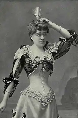 After initially performing a number of small roles at the Vaudeville Theatre, Grey moved to the Gaiety Theatre. The Gaiety presented musical burlesques that employed dancers, and so Grey studied dance with John D'Auban, among others, before debuting as a dancer in 1884. In 1885, she danced the role of Polly Flamborough in The Vicar of Wide-awake-field at the Gaiety and soon rose to become the principal dancer there. In addition to dancing, she often played comedy roles. Grey became known for her performances in Gaiety burlesques such as Monte Cristo Jr. and Little Jack Sheppard (1886), Miss Esmeralda (1887) and Ruy Blas and the Blasé Roué (1889 in London and then Australia). In 1891, she played one of the stepsisters in the Gaiety's Cinder Ellen up-too-Late after which the company, including Grey, toured the piece in Australia. She played Flo Fanshawe at the Prince of Wales's Theatre in In Town.[1] In 1893, she played Donna Julia in Don Juan at the Gaiety (by Meyer Lutz, A. C. Torr and Adrian Ross). The Dramatic Peerage commented, "The poetry of motion has no more charming exponent than Miss Sylvia Grey".[2]