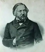 Mikhail Glinka's Kamarinskaya, which became famous as the first orchestral work based entirely on Russian folk song, is a case in point of the limits Russian composers faced and how they attempted to work around them.[9] Kamarinskaya is based on two themes, a slow bridal song, "Izza gor" (From beyond the mountains), and the title song, a naigrïsh. This second song is actually an instrumental dance played to an ostinato melody. This melody is repeated for as long as the dancers can move to it.[10] Glinka begins with "Izza gor," then introduces Kamarinskaya as a contrasting theme. He uses a transition to return to the bridal song and show the contrast between the two themes.[10] Another transition, this time using motifs from the bridal song, leads to the dance theme and the piece ends with the Kamarinskaya dance.[9]